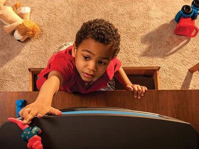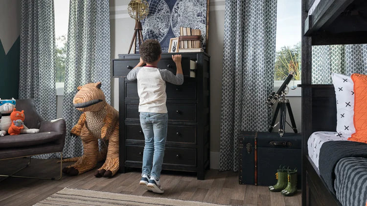 - Retire los elementos que puedan tentar a los niños a trepar, como juguetes y controles remotos, de la parte superior de los televisores y los muebles.